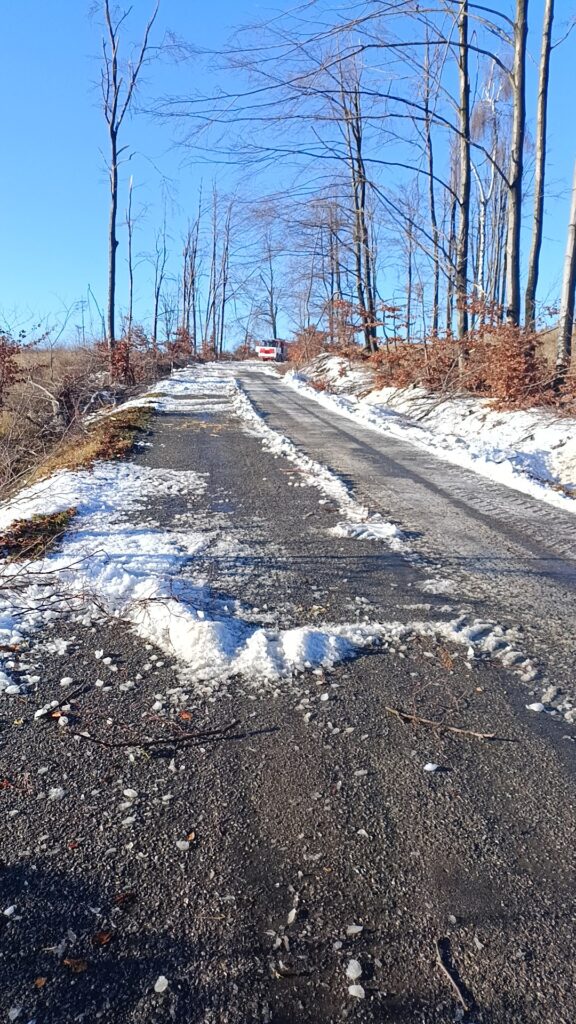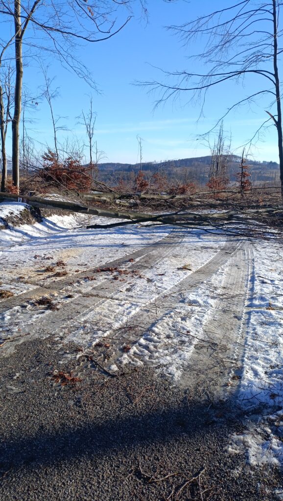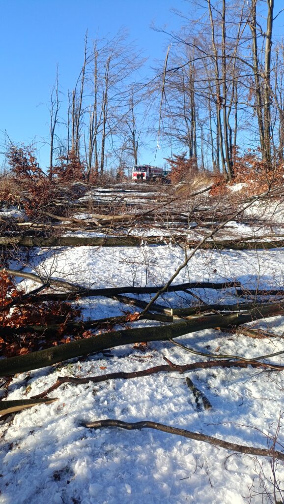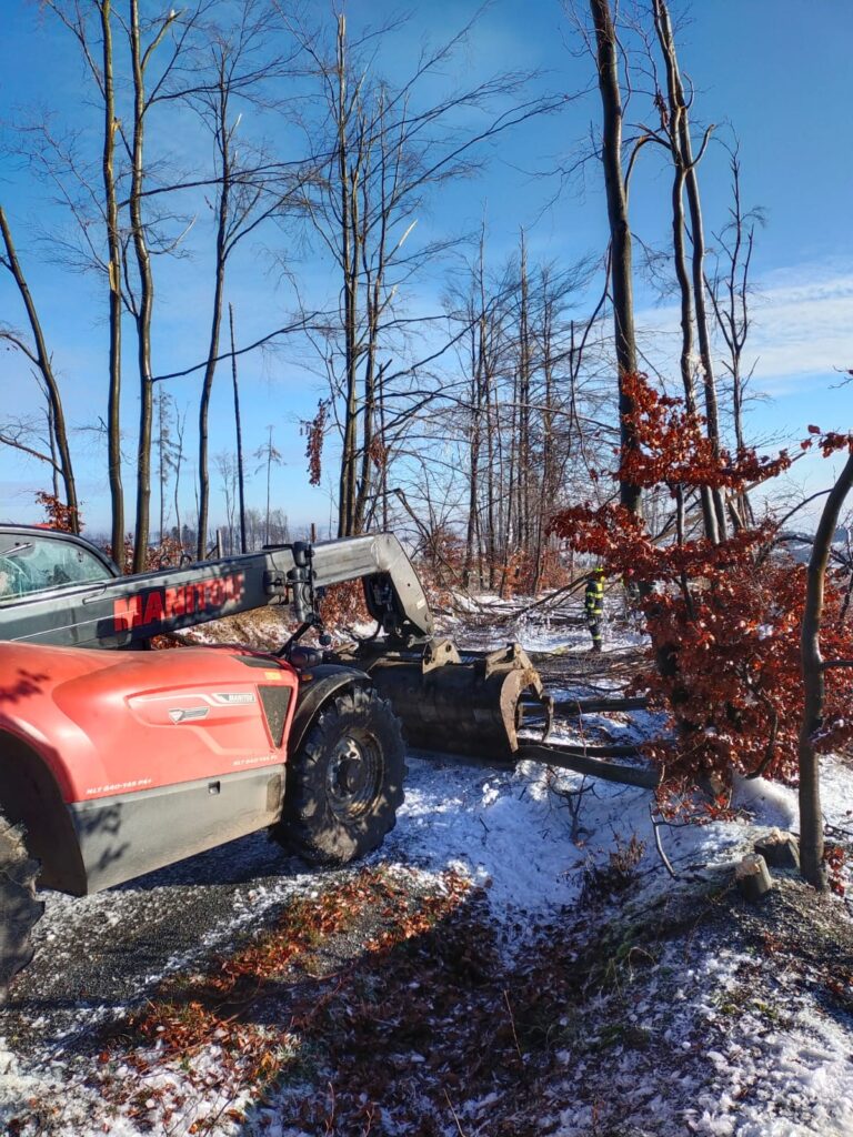 Ve čtvrteční dopoledne 18.12.2025 po domluvě s SUS a HZS byla povolána jednotka k odstranění překážek z uzavřené silnice směrem na Heraltice a obnovení její průjezdnosti. Tato cesta byla v předchozích dnech kvůli vysokému nebezpečí zcela uzavřena a na místě popadalo mnoho větví a stromů.